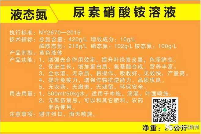 酰胺態(tài)氮:218g/L 硝態(tài)氮:102g/L 銨態(tài)氮:100g/L